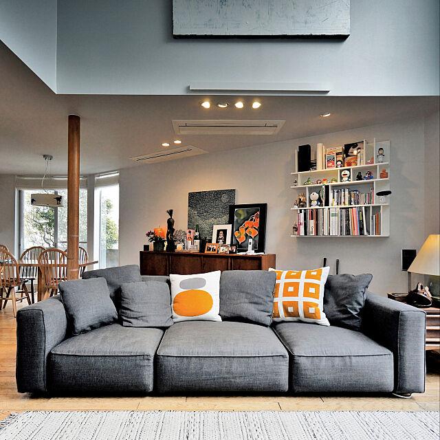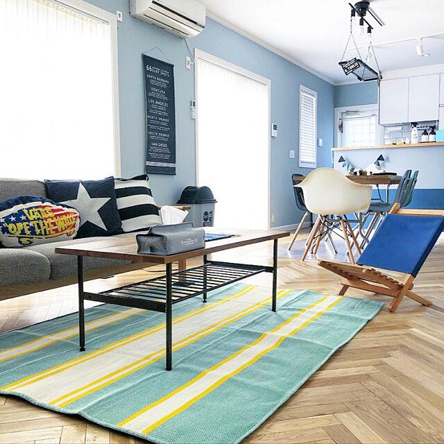 The living room sofa is upholstered in a West Coast style with mainly blue collars. Has a bumper cushion that suits the atmosphere of the room. If you choose such a simple sofa, you can enjoy it with a variety of playful cushions.